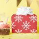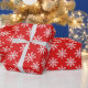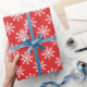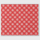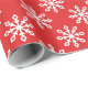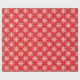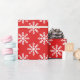 Dieses Bild zeigt einen lebendigen roten Hintergrund mit einer Reihe von weißen Schneeflocken in verschiedenen, komplexen Designs. Die Schneeflocken sind gleichmäßig über den Hintergrund verteilt und bilden ein festliches und optisch ansprechendes Muster.