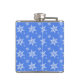 Schneeflockenmuster, weiße Schneeflocken, Schnee, Flachmann