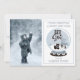 Niedliche Waldtiere (ein Bär, eine Eule und ein Kaninchen), die um einen Weihnachtsbaum im Schnee herum spielen, in einer Schneekugel mit den Worten "Let It Snow" werden in der rechten Mitte des Jahres vorgestellt. Oben rechts wählen Sie Ihren Gruß und unten rechts Ihren Namen. Die verlassen Features Ihres Fotos. Die Rückseite ist mit einem gemusterten, leicht blauen und grauen Schneeflocken Hintergrund versehen, der in jeder gewünschten Farbe verändert werden kann. Modifiziertes Template Foto mit freundlicher Genehmigung von Kobby Mendez via Unsplash.