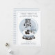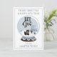 Niedliche Waldtiere (ein Bär, ein Kaninchen und eine Eule), die um einen Weihnachtsbaum im Schnee herum spielen, in einer Schneekugel mit den Worten "Let It Snow", die in der Mitte des Jahres gezeigt werden. Oben wählen Sie Ihren Gruß und unten Ihren Namen. Der Hintergrund ist einfach zu koordinieren hellblau, grau und weiß gestreift und kann in beliebiger Farbe geändert werden.
