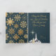 Christliche Weihnachtsnachtsnacht, Heilige Nachtkarte mit einer Silhouette einer schneebedeckten Kirche an einer Winternacht mit dem Stern von Bethlehem.