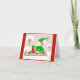 Niedliche Grußkarte von Snowman sitzend auf einem Schlitten und eine schneebedeckte Landschaft im Hintergrund.