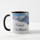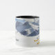 Schneemann auf Skis in schneebedeckten Bergen Pers Tasse