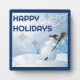 Bringen Sie den Weihnachtsgeist Ihrer Zuhause oder Ihrem Büro mit dieser schönen Abbildung eines Schneemanns mit einem schwarzen Hut, der einen Besen trägt. Er lehnt sich zurück und schaut auf Schneeflocken und den Weihnachtsgrüß "Happy Holidays". Diese eignen sich ideal für den Einsatz in Unternehmen oder Familien.