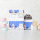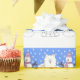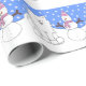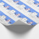 Niedlicher Samoyed und Snowman auf einem schneebedeckten Hintergrund. Große Weise, Ihre Geschenke einzuwickeln.