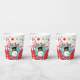 Eine lustige und farbenfrohe Illustration des Schneemanns auf einer blauen Tasse mit heißem Kakao; Peitschcreme und Sprinklen, gerahmt von einem weißen Polka-Punkt auf Rot und einem mehrfarbigen Polka-Punkt auf Weiß. Diese sind ideal für Weihnachtsgetränke und eignen sich hervorragend, um den Strand zu erreichen oder für Kinder und Familien während der Weihnachtsferien.