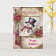Diese Weihnachtskarte zeigt einen Schneemann in einem schwarzen Zylinder, der einen roten Schal trägt, als Hauptelement auf einer Junk-Journal-Seite. Blumen, Schneeflocken und goldene Filigranarbeit mit Text vervollständigen die Seite. Sehr schön und festlich!