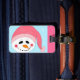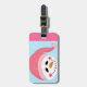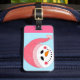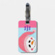 Ein lustiges Gepäckanhänger mit einem niedlichen Schneemann in einem rosa Hut, niedlicher Ausdruck! Passen Sie Ihre Wünsche an.