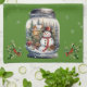 Schneemann in Jar Snowflakes grün Geschirrtuch