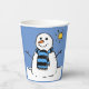 Cartoon Illustration eines Schneemanns an einem sonnigen Tag. Tasse Papier zu Weihnachten.