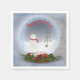 Schneemann mit goldenem Weihnachtsstern für alten Kiefernbaum in einer Schneekugel.