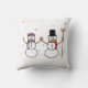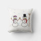 Dieses Kissen hat Schneemänner und fallende Schneeflocken.