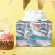 Schneemann mit einem roten Retro-LKW Geschenkpapier