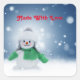 Schneemann mit grünem Schal Quadratischer Aufkleber