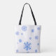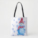 Eine zweiseitige, zerklüftete Tasche mit einem Schneemann auf der einen Seite und abfallenden Schneeflocken auf der anderen. Es ist eine schöne, zweiseitige, robuste Tasche, die ideal für Geschenke ist und kann auch als wiederverwendbare Geschenktasche verwendet werden, um einige Geschenke an Ihre Freunde Tasche.