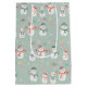 Der Text "Lass es schneien" auf einem weichen, grünen Hintergrund mit Schneemännern und Schneeflocken.