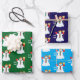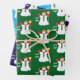 Geschenkpapierbögen mit niedlichen Schneemännern, die einen schlabbrigen Hut, rote Handschuhe und einen farbenfrohen Schal tragen. Die Bilder, der Hintergrund und der Text können personalisiert werden. Originelle Kunst von W.B.