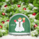 Eine Schneekugel mit einem niedlichen Schneemann, der einen floppy Hut, rote Handschuhe und einen farbenfrohen Schal trägt. Die Bilder, der Hintergrund und der Text können personalisiert werden. Originalkunstwerk von W.B.