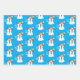 Verpackungspapierbögen mit niedlichen Schneemännern, die einen flachen Hut, rote Handschuhe und einen farbenfrohen Schal tragen. Die Bilder, der Hintergrund und der Text können personalisiert werden. Originelle Kunst von W.B.
