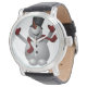 Schneemann mit Vintagem Lederband Red Scarf Schwar Armbanduhr