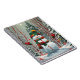 Schneemann im Wald, in roten und grünen Tönen, perfekt für die Feiertage zum Jahresende