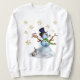Frauenschneemann Sweatshirt mit Schneemann, Vogel, Schneeflocken und Kaninchen.