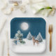 Schneemann und Hirsch im Schneeflocken Pappteller