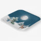 Niedlicher Schneemann und Buchhirsch in Schneeflocken mit Winterkiefern und glühendem Vollmond. Die Farbe des Himmels kann geändert werden.