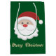 Diese niedliche Santa Claus und Snowman Geschenktasche wird Kindern aller Altersgruppen gefallen! Die Vordertüte hat ein niedliches Cartoon-Portrait des Weihnachtsmannes, mit dem stilisierten Text in hellgold, der "Frohe Weihnachten" sagt. Auf der Rückseite der Tasche (abgebildet) befindet sich ein bezaubernder Schneemann mit einem rot-weiß gestreiften Bonbons, der mit einem hübschen grünen Bogen verbunden ist. Im unteren Bereich befinden sich zwei Textfelder für Ihre persönliche Nachricht. Die Bilder und der Text werden auf einem dunkelgrünen Hintergrund platziert. Niedlich!