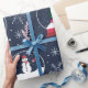Feiern Sie die Saison mit diesem festlichen Verpackungspapier mit charmanten Schneemännern und Weihnachtsbäumen, eingebettet in Schneegloben auf einem reichen marineblauen blauen Hintergrund. Dieses skurrile Urlaubsprojekt bringt gemütliche Winterzauber und nostalgischen Charme zu Ihrem Geschenk