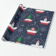 Schneemann und Weihnachtsbaum mit Schneeglobe Geschenkpapier