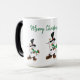 Fröhliche Weihnachtsfeier mit Niedlichen Snowmen, die einen Top-Hut tragen. Es sieht aus wie eine schlichte schwarz-blaue Tasse, aber mit etwas Kaffee und - zauberhaft - Ihr lustiges Design, cooles Muster oder besonderes Foto. Nach dieser Tasse dreht man sich um. Sie wird mit einem besonderen, wärmeempfindlichen Überzug hergestellt. Wenn dann eine heiße Flüssigkeit eingegossen wird, erscheint dein Design auf einem hell-weißen Hintergrund. Es mag einfach klingen, aber du kannst uns glauben, eine Verwandlungstasse wirkt immer als Überraschung und begeistert.