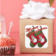 Dieses Weihnachtsaufkleber-Design zeigt ein Duplikat eines roten und grünen Strumpfs mit einem bezaubernden Schneemann, der mit einem karierten Schal und einem Set mit Hut auf weißem Hintergrund gekleidet ist. Sie können den schwarz umrissenen Frohen Weihnachtstext entfernen, dann klicken Sie auf Anpassen, um den Text in einem Schriftart Stil, Farbe und Größe, die Sie bevorzugen hinzuzufügen. Klicken Sie unter Bearbeiten und Hintergrund auf Anpassen!, um eine andere Hintergrundfarbe als weiß auszuwählen.