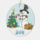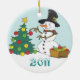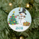 Dieser Schneemann kommt in den Weihnachtsgeist, indem er den Baum trimmt. Sogar wird das größten des Scrooges Herz durch es gewärmt. Bild und Text auf beiden Seiten. Fertigen Sie es mit Ihrem eigenen Text besonders an.