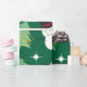 Grüner Weihnachtsbaum mit Schneemann-Muster Weihnachtsverpackung Papier. Niedliche Darstellung von Weihnachtsbäumen und Schneemännern. Großartiges Papier im Dezember für Weihnachten. Niedlicher Weihnachtsbaum und Schneemann-Musterpapier für Geschenke.