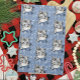 Ein Schneeleopard umgeben von einer Blume und Schneeflocken.