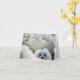 Diese niedliche Note Card beinhaltet Snowdrop, einen kleinen maltesischen Hund, der durch ein eis- und schneebedecktes Fenster einblickt.