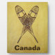 Ein gekreuztes Paar Schneeschuhe auf einem Braintan Leder Hintergrund. Es erscheint auch die benutzerdefinierte Textausgabe "Kanada". Es gibt verschiedene Stile von traditionellen Schneeschuhen. Die hier abgebildeten sind aus Ash und Moosehid Babiche (Webbing) im Alaskan-Muster. Länger und dünner als andere Stile wie der Bärenjunge, Alaskan Schneeschuhe ermöglichen ein natürlicheres Tor und sind gut geeignet für Langlaufreisen. Die leicht umdrehten Spitzen erlauben es, die Füße etwas zu ziehen. Seien Sie beraten Schneeschuhe können für einen ausgezeichneten Himmel, in der Regel im schlimmstmöglichen Augenblick.