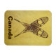 Ein gekreuztes Paar Schneeschuhe auf einem Braintan Leder Hintergrund. Es erscheint auch die benutzerdefinierte Textausgabe "Kanada". Es gibt verschiedene Stile von traditionellen Schneeschuhen. Die hier abgebildeten sind aus Ash und Moosehid Babiche (Webbing) im Alaskan-Muster. Länger und dünner als andere Stile wie der Bärenjunge, Alaskan Schneeschuhe ermöglichen ein natürlicheres Tor und sind gut geeignet für Langlaufreisen. Die leicht umdrehten Spitzen erlauben es, die Füße etwas zu ziehen. Seien Sie beraten Schneeschuhe können für einen ausgezeichneten Himmel, in der Regel im schlimmstmöglichen Augenblick.