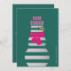 Die Weihnachtskarte der lustigen, minimalistischen und modernen Schneemännerin enthält gestreifte weiße Schneebälle und einen "glücklichen Urlaub", der einen Hut bildet und eine charmante Illustration des Schneemanns schafft. Ein heißer rosa Schal fügt ein farbenfrohes Highlight hinzu. Passen Sie Ihre Karte mit einem eigens für Ihre Familie zusammengestellten Grußtext an.