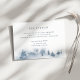 Diese elegante Winterhallenkarte mit schneebedeckter Waldlandschaft mit Aquarellkiefern in Blau und Grau wurde für die Abstimmung mit unserer Snowbound Hochzeitskollektion konzipiert. Pünktlich zum Hochzeitsempfang mit Timing, Veranstaltungsort und Adresse in klassisch rauchblauer Schrift.