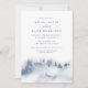Die elegante Winterbräunungsdusche mit Aquarellfarben zeigt eine schneebedeckte Berglandschaft mit Pinienbäumen und Silhouetten in schlichten Blau- und Grautönen. Personalisieren Sie Ihre Brautparty-Details mit schicken blauen Buchstaben. Eine schöne Wahl für elegante Brautpartys in Berg, Wald oder Schnee.