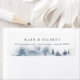 Diese eleganten Rücksendeadressen-Aufkleber, die auf unsere Snowbound Hochzeitskollektion abgestimmt sind, zeigen Ihren Namen und Ihre Rücksendeadresse auf einem Aquarell und zeigen eine verschneite Bergwelt mit Pinienbäumen in rauchigen Blau- und Grautönen.