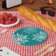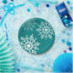 Die weihnachtliche Papiertafel zeigt ein Schneestern-Design vor einem aquamarinen Hintergrund. Tauschen Sie den türkisfarbenen Hintergrund aus und ersetzen Sie ihn durch die Farbe Ihrer Wahl.