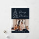 Senden Sie Ihren Urlaub Grüße an Freunde und Familie. Stilvolle und elegante Urlaubskarte mit Ihrem Foto mit schneebedecktem Weihnachtsbaum auf marinebasischem Hintergrund. "Frohe Weihnachten" wird in einem weißen, stilvollen Schriftart gezeigt. Personalisieren Sie die Karte mit einem Foto und Ihrem Familiennamen. Machen Sie diese Urlaubskarte noch einzigartiger, indem Sie eine individuelle Nachricht auf der Rückseite schreiben.