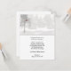 Diese moderne Party Einladung ist ideal für Ihre Winterveranstaltung. Der Hintergrund ist eine weiße, schneebedeckte Waldszene mit Kiefern. Vor der links Seite befindet sich ein weiterer schneebedeckter Baum mit einem schönen roten Kardinal-Vogel auf einem Ast.