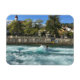 Ein schnell fließender Fluss in der Thun Schweiz, wo abenteuerliche junge Leute ihre Surfferkenntnisse ausüben