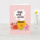 Niedliche Cartoon Krabbe mit Kaffee und "Get Well bald" Nachricht. Schreib deine benutzerdefinierte Nachricht hinein.