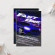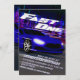 Beginnen Sie Ihre Motoren und fahren Sie bis zum Ziel, um den 1. Geburtstag Ihres Babys zu feiern. Diese Einladung wurde digital gezeichnet, um ein sehr schnelles Sportauto bei einem Nachtrennen zu veranschaulichen, bei dem niemand aufholen kann