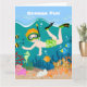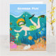 Dies ist eine Darstellung, die eine lebendige Unterwasserszene mit einem Jungen zeigt, der mit tropischen Fischen, Korallenriffen und anderen Meereslebewesen nah ist. Jeden Sommertag ist ein Party für Kinder am Strand. Das Meer ist der richtige Ort, um sich mit Freunden zu amüsieren, zu schwimmen und zu tauchen, vielleicht auch um ihren Geburtstag zu feiern! Vergessen Sie nicht das Handtuch, den Hut und den Sonnenschutz! Sie können diese Geburtstags-Grußkarte für einen Taucher, aber auch für einen Schwimmer benutzen, für alle, die das Meer mögen, oder für ein Mädchen, das im Sommer geboren war. Sie können das Interieur dieser Grußkarte mit einer besonderen Nachricht personalisieren. Wählen Sie den Schriftart und die Farbe. Es ist einfach!